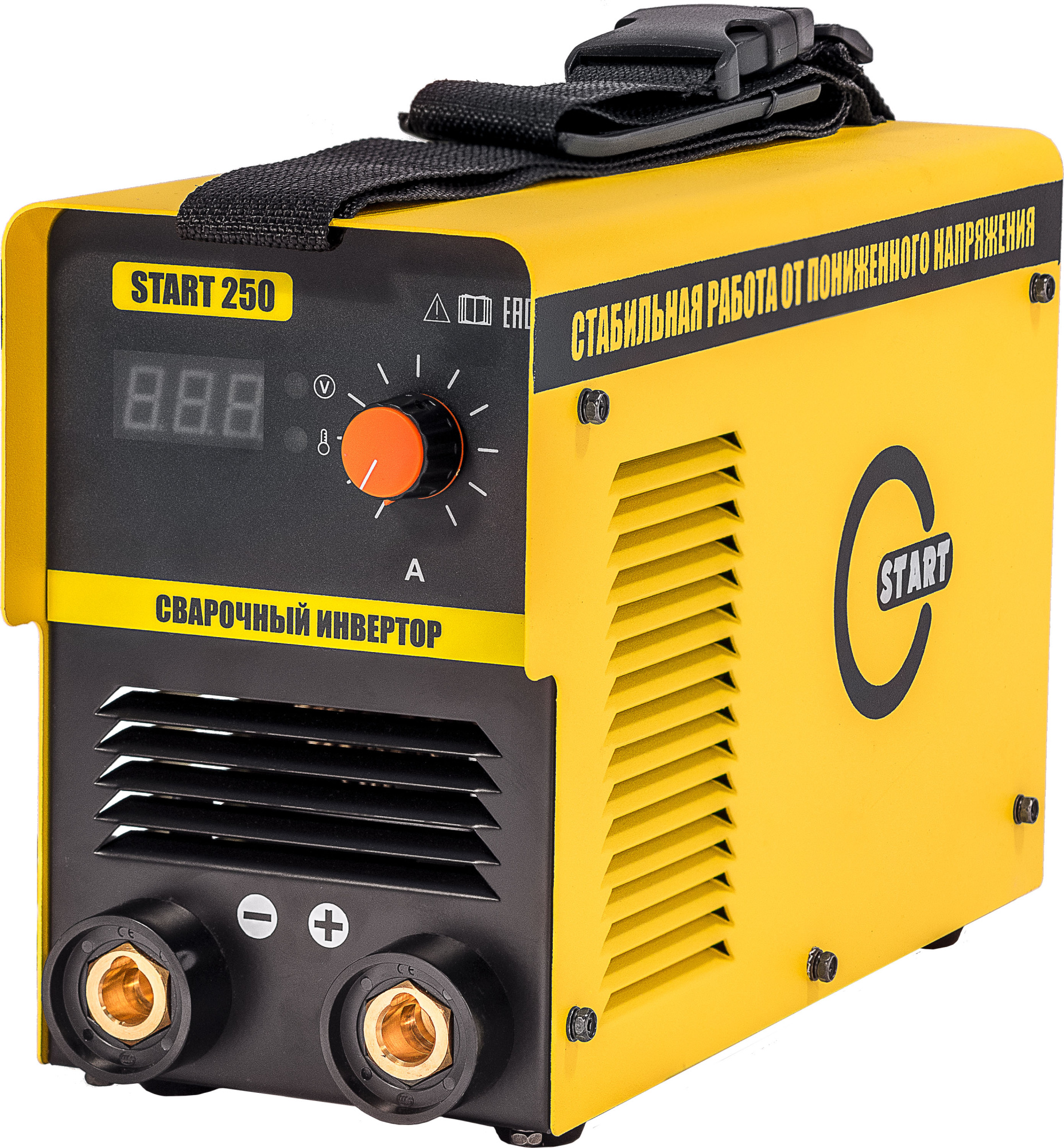 START MMA 250 - Легкий и компактный, надежный и в то же время мощный. Аппарат предназначен для использования в бытовых и полупрофессиональных условиях. Отлично справится с электродами от 1,6 мм - 5,0 мм. Его габариты и вес с легкостью позволяют использовать данный сварочный аппарат при сварочных работах на высоте, повесив аппарат на плечо - сварщик не будет испытывать никакой усталости. Даже пониженное напряжение в сети не помешает Вам выполнить необходимую работу - ведь даже при просадке сети до 140 Вольт - аппарат спокойно будет варить электродами 3 мм.
