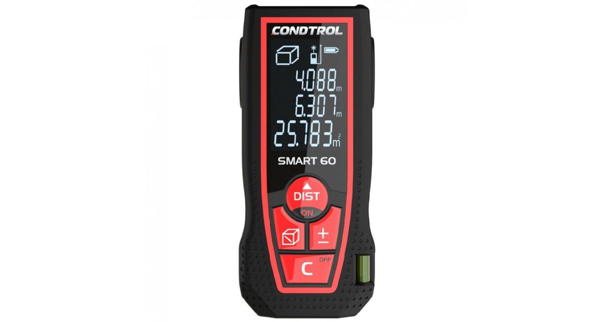 CONDTROL SMART 60 – лазерный дальномер, выполненный в эргономичном ударопрочном корпусе. Лазерная рулетка уверенно работает на расстоянии от 0,05 до 60 метров даже на улице. CONDTROL SMART 60 отличается высокой скоростью измерений, что позволяет быстро проводить необходимое количество расчетов. Погрешность измерения – всего 1,5 мм.