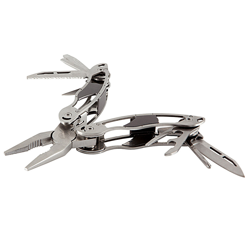 Нож многофункциональный Frame Work. Мультитул из нержавеющей стали и анодированного алюминия. Включает в себя клещи, кусачки, нож, пилу, пилку для ногтей, открывалка для бутылок, консервный нож, маленькую и среднюю плоские отвертки, крестовую отвертку, небольшой нож и шило. Длина 108 мм, ширина 50 мм