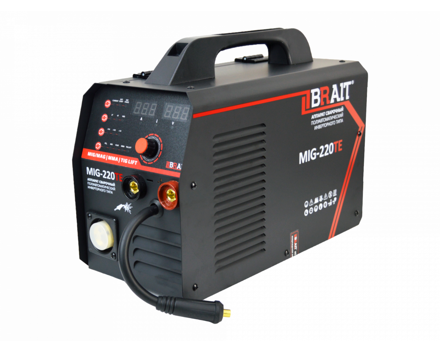 Инвертор сварочный полуавтомат MIG-220TE— это многофункциональный сварочный аппарат инверторного типа. Данную модель используют для проведения ремонтных работ в мастерских или для использования в бытовых условиях. Компактные размеры и небольшой вес делают аппарат весьма портативным, поэтому его удобно использовать в условиях ограниченного пространства или там, где воспользоваться громоздкой моделью не представляет возможным.