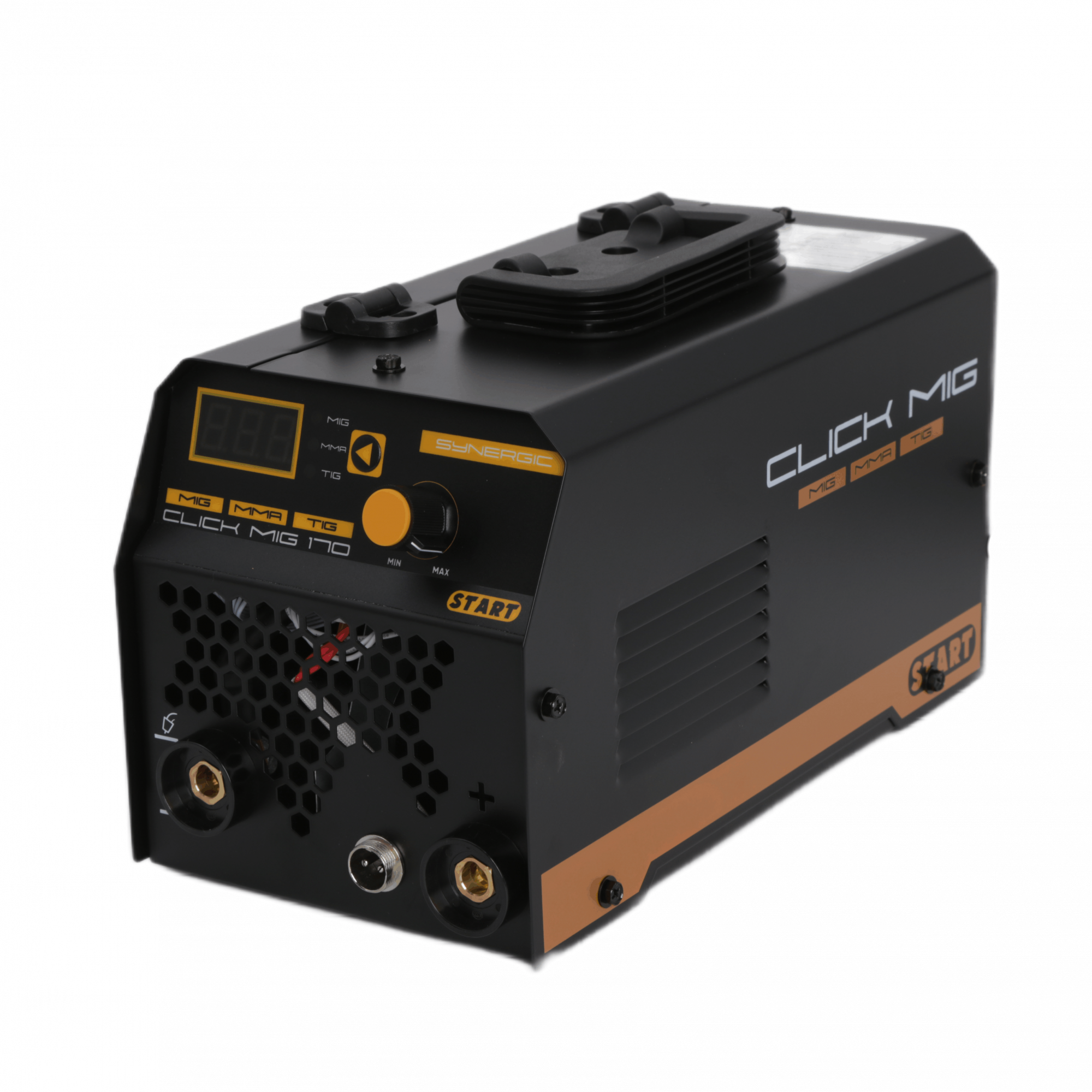 START ClickMIG 170 — это инверторный сварочный аппарат, сочетающий в себе простоту для начинающих и функциональность для опытных сварщиков. Он работает в трёх режимах: полуавтоматическая сварка порошковой проволокой (без газа), ручная дуговая сварка (MMA) и TIG-сварка (контактный поджиг). Благодаря малому весу и компактному корпусу, идеально подходит для выездных работ, монтажа и бытового использования.