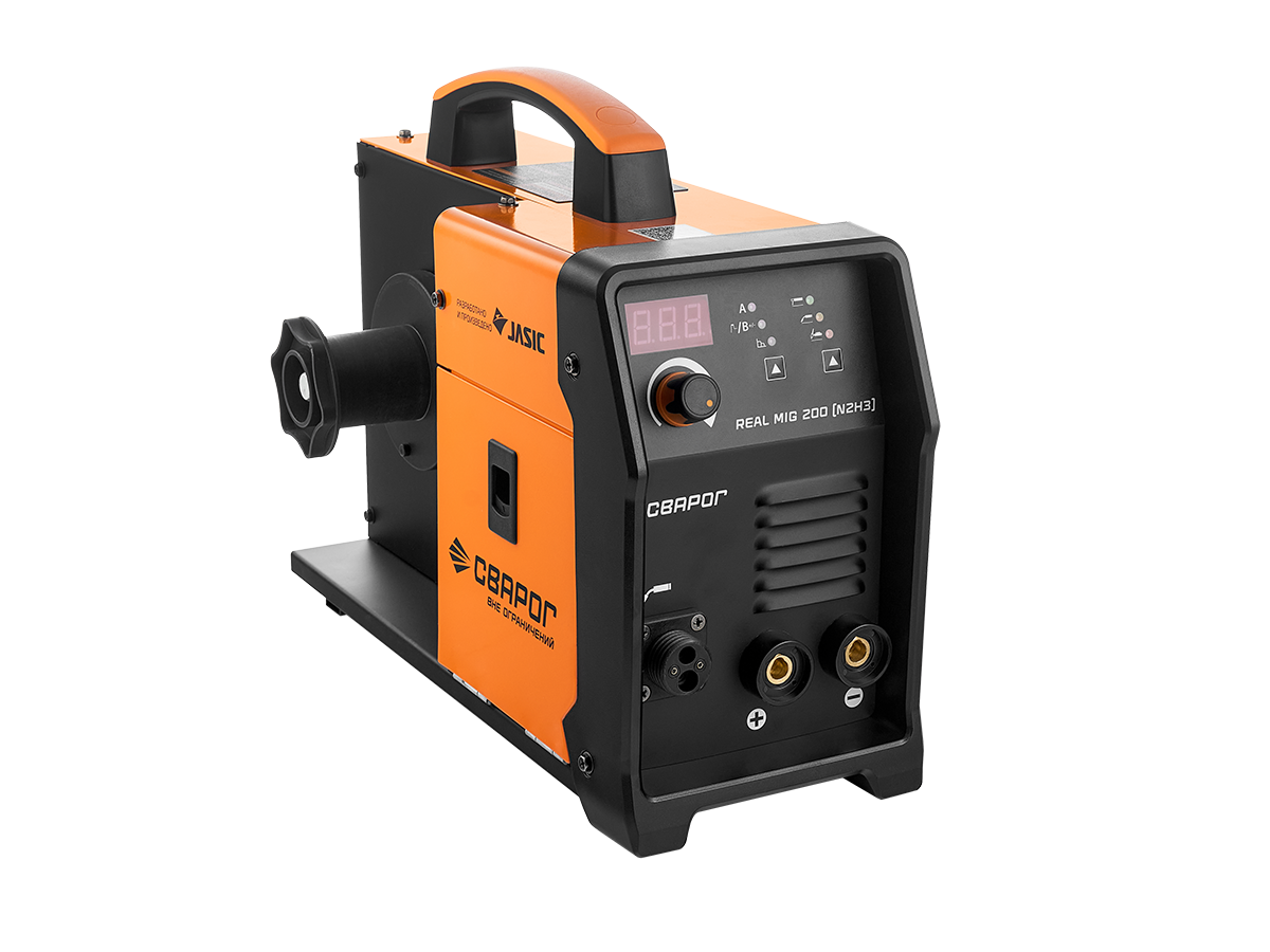 REAL MIG 200 (N2H3)— инверторный сварочный аппарат для полуавтоматической сварки в среде защитных газов (MIG/MAG), сварки порошковой проволокой (FCAW), ручной дуговой сварки покрытым электродом (ММА), а также аргонодуговой сварке TIG Lift.