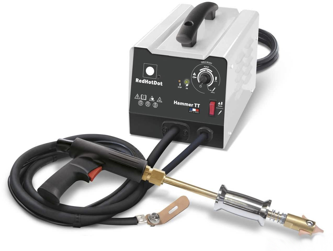 HAMMER TT предназначен для профессионального использования в промышленных условиях и позволяет ремонтировать стальные детали кузова любой сложности. Выбор инструмента осуществляется единственным поворотным регулятором на панели управления, что значительно сокращает время и исключает ошибки, связанные с настройкой длительности импульса.