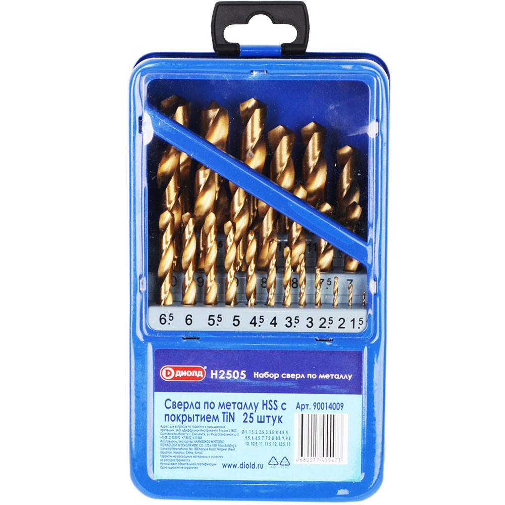 Набор сверл по металлу ДИОЛД Н 2505 (25шт; золото) 90014009